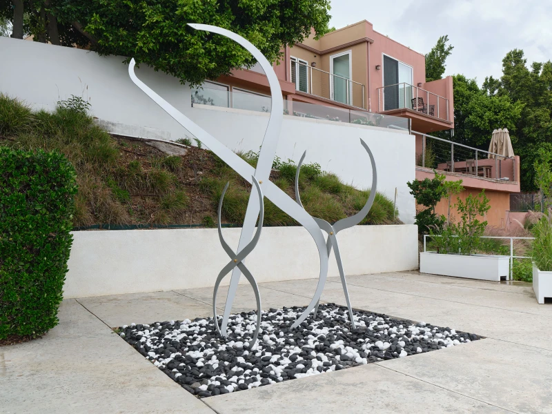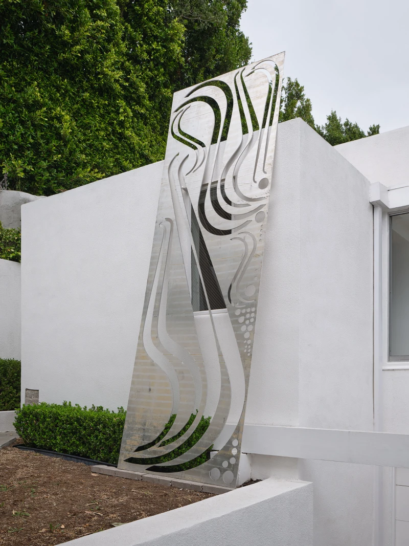 wunderkammer marks the final artistic intervention at 1880 Blue Heights Drive before the restoration of Neutra’s original design commences. While this home reflects the twentieth-century ideals of biorealism—a functional place to live in nature—it is not emblematic of Neutra’s Case Study houses. This space was designed to address the particular needs/desires—some documented, some discovered—of an individual’s profession and lifestyle. wunderkammer’s contents contend with a palimpsest of contemporary renovations and reside amongst the house’s faded trace of Modernism. During the structure’s transitional phase, the artist’s freedoms are measured against the architect’s concerns: the future preservation of the past. McBride’s variable arrangements inspire a dance between artmaking and engineering—a negotiation of room for invention. Each work invokes the assessment of a bearing wall, the depth of a floorboard, and whether a stairwell is up to code. The installation (outdoors, indoors, and across various rooms) catalyzes a sequence of inquiries, limitations, and parameters—and their resulting possibilities.