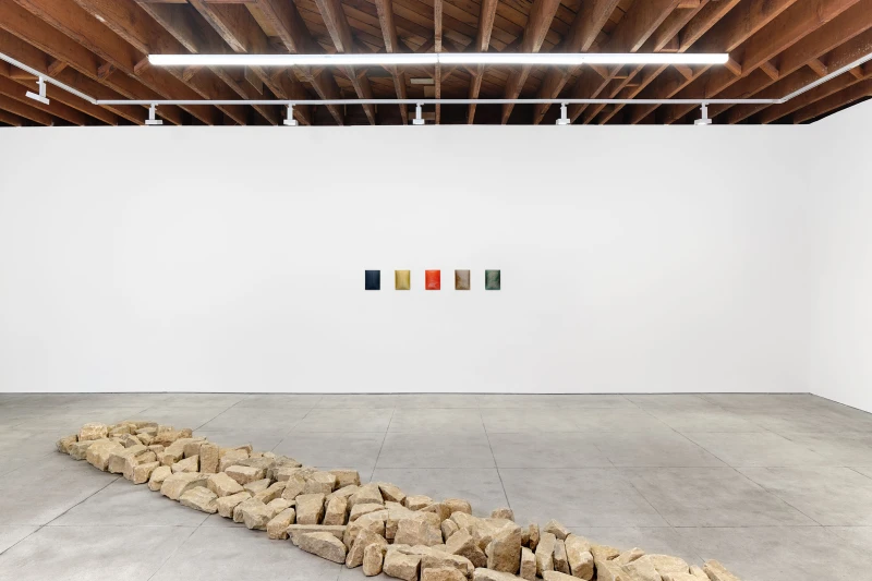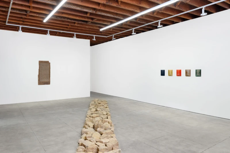 In this fusion of the virtual and the tangible, of algorithm and matter, Imagine Inscape will be shown in dialogue with works by Richard Long. Where Long collects natural materials, wood, stones, fragments, during his walks and arranges them on the ground in gestures of trace and journey, Dekyndt begins with a found fossil fragment, which she hybridizes through technological intervention. Long’s enduring practice ruptures time, space and distance. Materializing in laborious analogue, Long organizes a logic of fragments from the effects and fractures of time, exposing an elemental source code and earthly material memory. This dialogue reveals two complementary approaches: one grounded in earthly materiality and the repetition of bodily movement, the other oriented toward a post-natural speculation, where the imprint of time is extended through digital processes. Together, these works create a landscape where matter, spirit, and technology are intertwined.