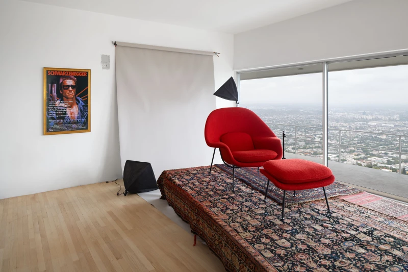 Presented by Del Vaz Projects and OKEY DOKEY KONRAD FISCHER, wunderkammer is an installation by Rita McBride at Blue Heights Arts & Culture—located at the house that the architect Richard Neutra designed for the German-Jewish émigré, artist/art collector, dealer, and educator Galka Scheyer in 1934. wunderkammer begins with McBride clearing space in her studio to create a singular, novel artwork. The circumstance of this rearrangement results in an amalgamation of past and in-process works hung and placed randomly. Situated similarly in this domestic setting (without chronology, rhythm, or reason), McBride’s works—often engaging civic space, urban infrastructure, and industrial fabrication—mold into compartmental, eclectic fixtures. While every element originates from a specific point in the evolution of her practice, here, each piece functions as a neighbor—relevant in its immediate relation to the artwork that it surrounds and the architecture that surrounds it. Moving from one object to the next is kinetic rather than choreographed; there is potential for perpetual reordering.